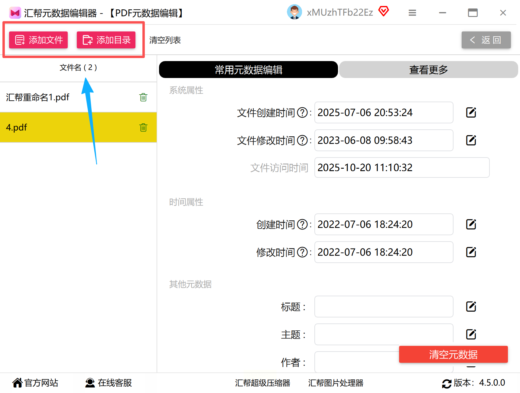 步骤二:点击顶部工具栏的“添加文件”按钮,将需要修改的PDF文档导入系统。软件支持批量导入,可同时处理多个文件,显著提升工作效率。