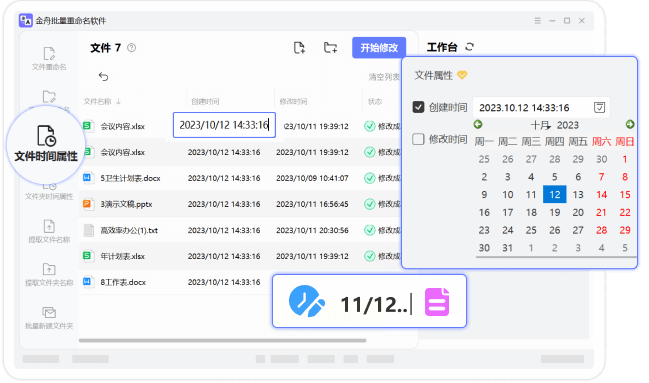 步骤二:文件导入后,软件会显示所有文件的属性信息,比如创建时间、修改时间等。在右侧,你会看到一些小图标,比如铅笔形状的箭头,这表示这些属性是可以编辑的。