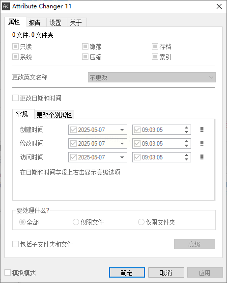 Attribute Changer是Windows平台上一款轻量实用的文件属性修改工具,支持修改创建时间、修改时间、只读/隐藏属性等,且操作流程与系统右键菜单深度整合,适合快速调整单个或少量文件。