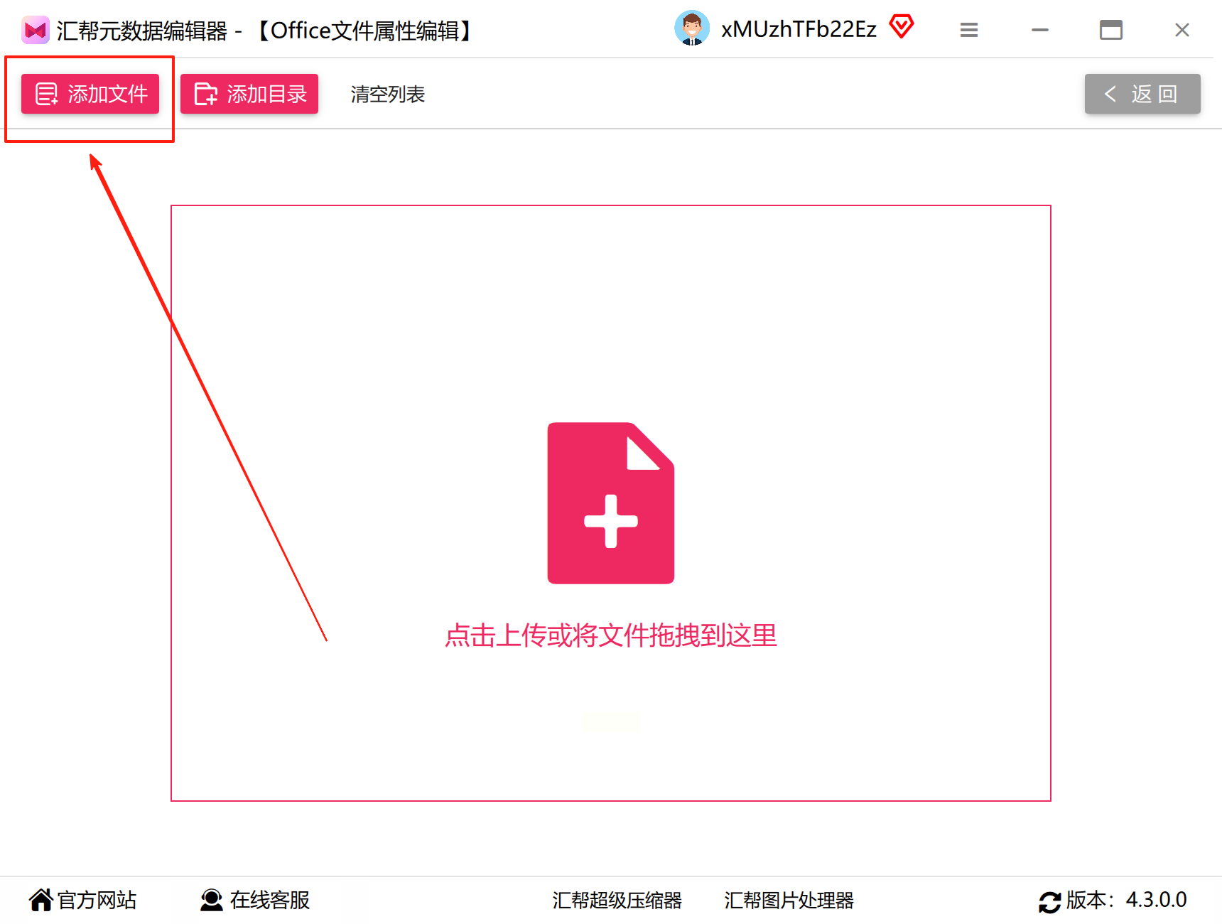 打开汇帮元数据编辑器,在主界面中找到“Office文件属性编辑”选项(该选项默认支持Word、Excel、PowerPoint等常见文档类型),点击进入属性编辑模块。若需编辑其他格式文件,可通过软件的“扩展格式支持”功能添加支持