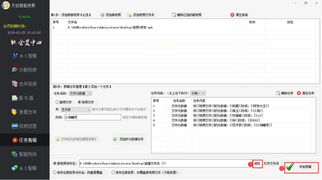 7. 导出视频:点击"保存"设置输出位置,然后点"开始剪辑"就大功告成啦!处理速度取决于视频大小,一般几分钟就好。