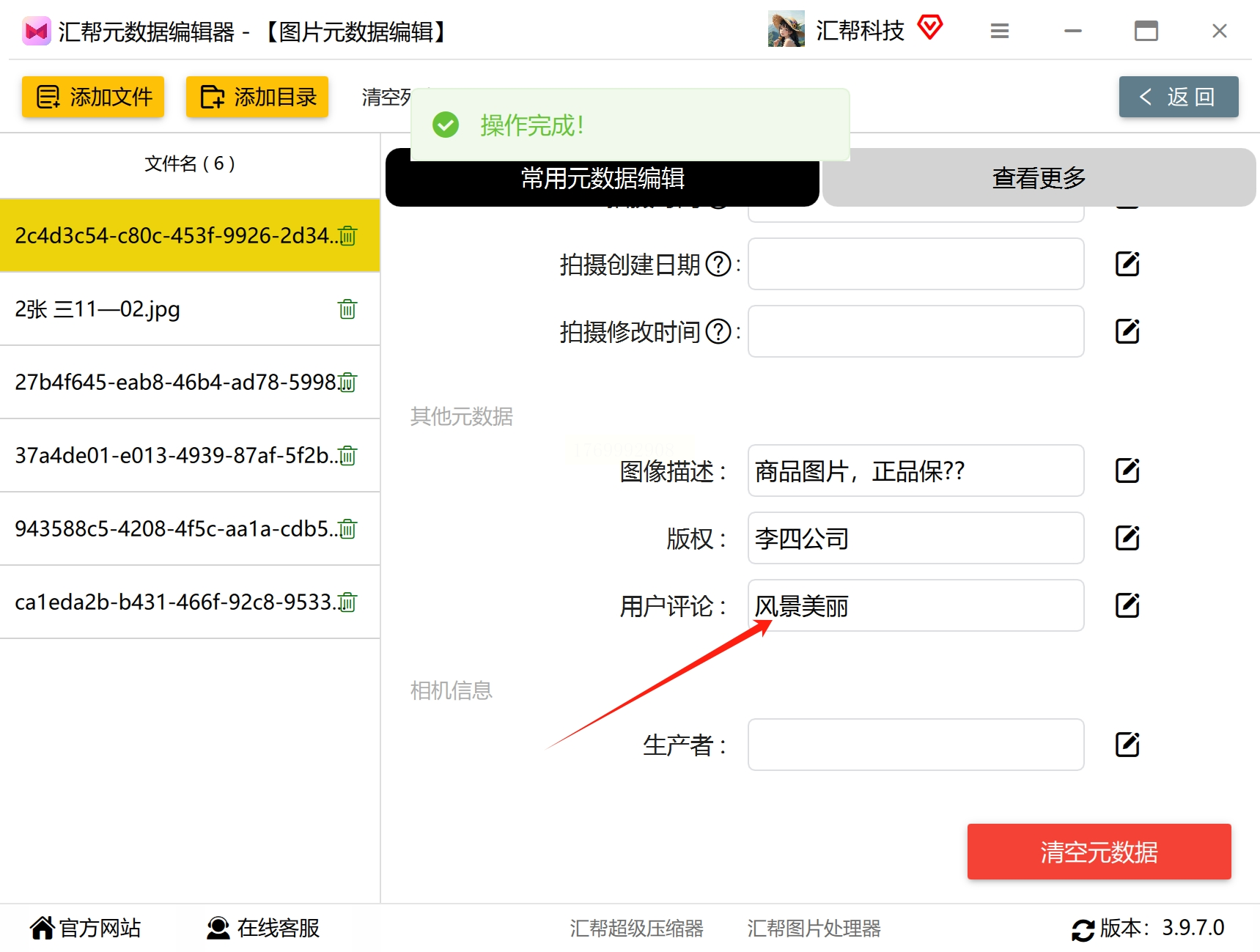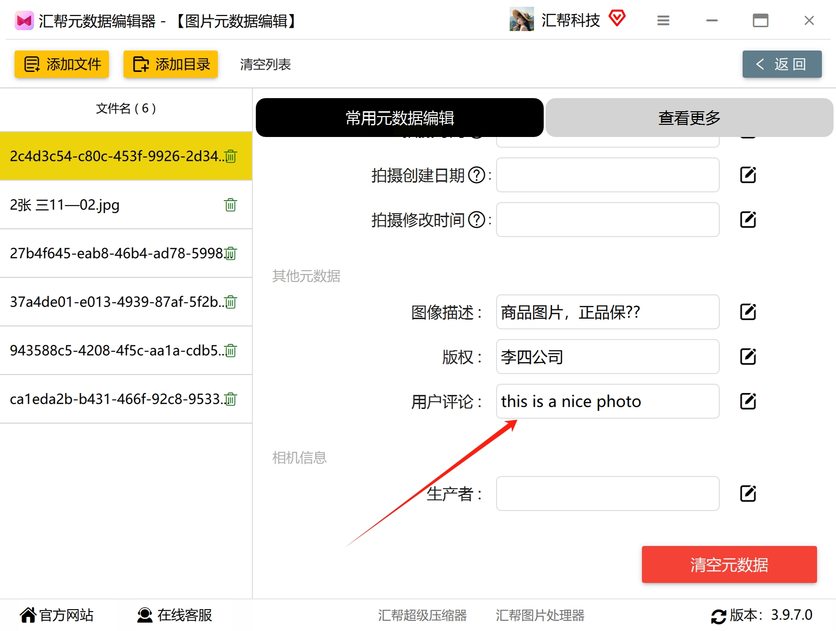 方法一:使用专用元数据编辑软件(以汇帮元数据编辑器为例)