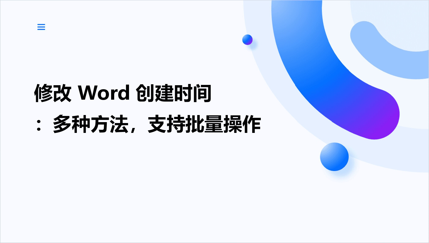 在日常工作中,我们经常需要处理各种文档,尤其是Word文件。文件创建时间作为元数据的一部分,不仅影响文件的排序和管理,还可能涉及合规性要求。修改文件创建时间可以帮助我们更好地组织文档,修复错误的时间属性,或者满足特定场景的需求。市面上有多种工具可以实现这一功能,但操作方法和适用场景各不相同。无论您是新手还是有一定经验的用户,都能从中获得实用指导。接下来,我们将逐步讲解具体操作,并解答常见问题,确保您能轻松掌握。