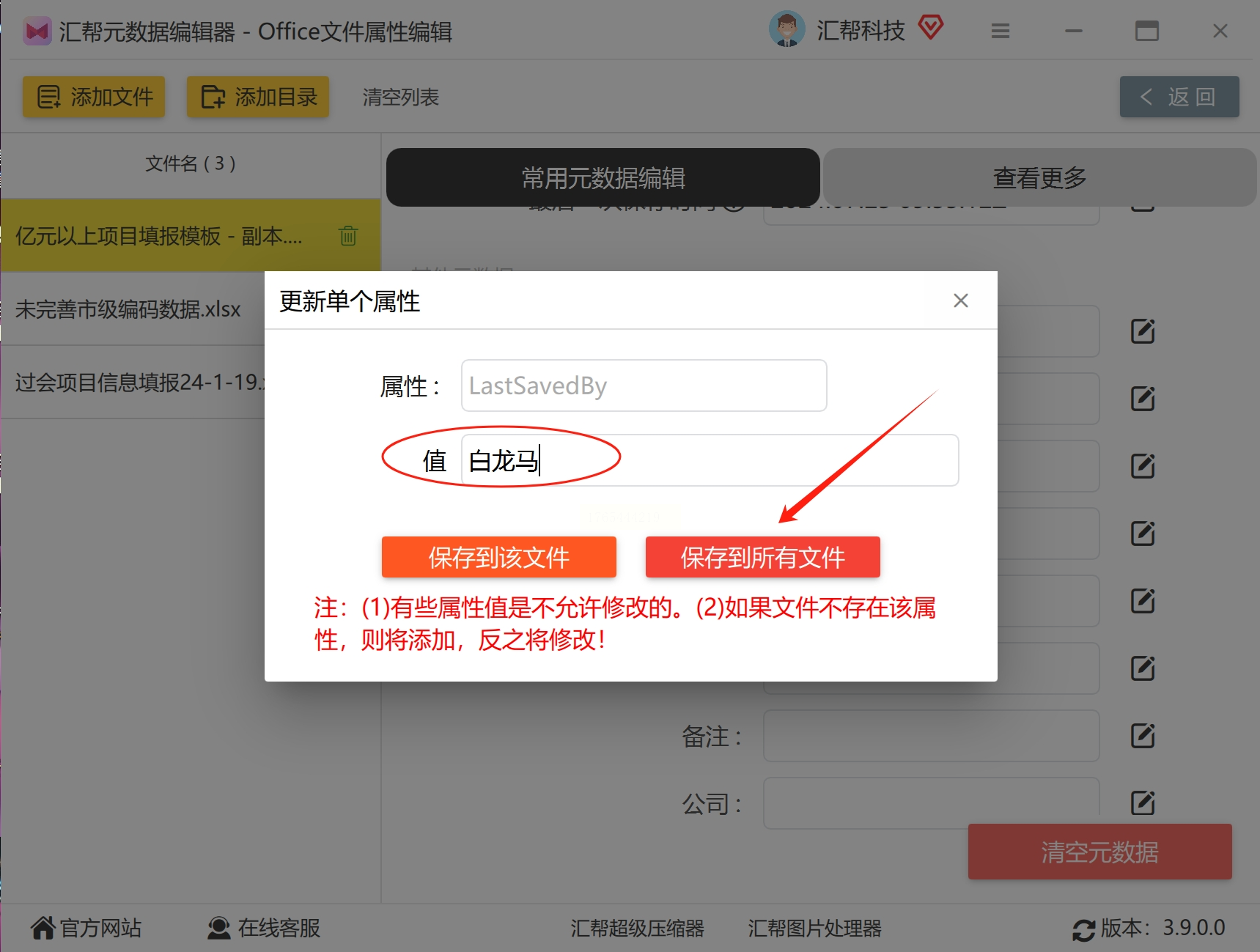 点击“最后修改者”旁边的编辑框,会弹出一个输入窗口。在这个窗口里,直接输入你想要设置的新编辑者姓名,比如“张三”或“项目部-李四”。输入完成后,注意看,通常会有一个 “保存到所有文件” 的按钮。点击这个按钮,软件就会一键把你刚刚输入的名字,应用到所有已导入的文件中。