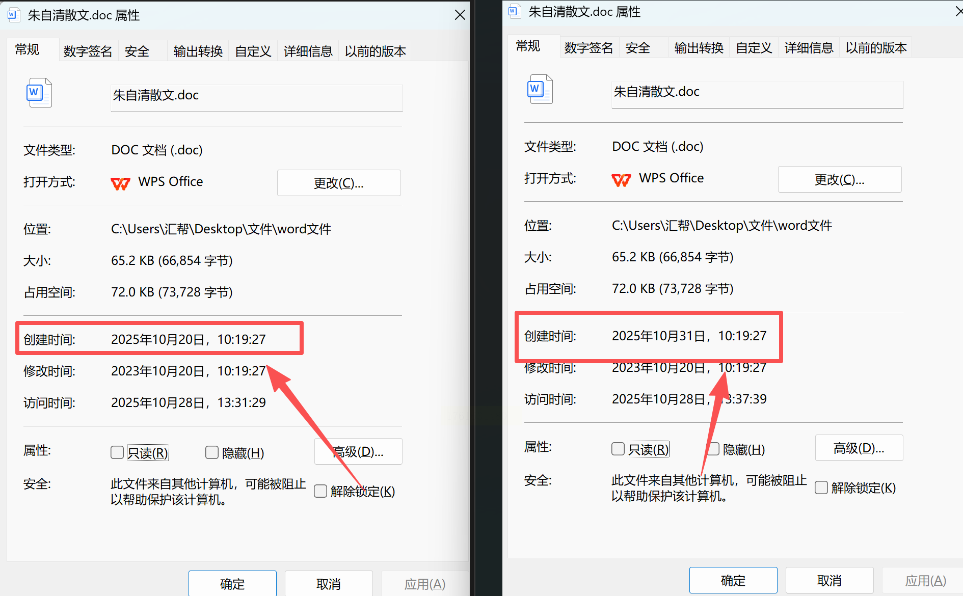 - 复制已有时间:若需复制其他文档的创建时间,可先选择目标文件,点击「复制时间」按钮一键复用。