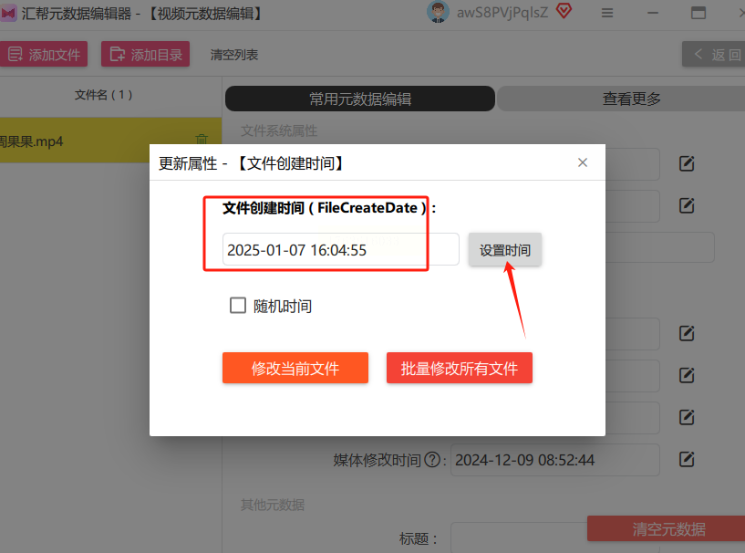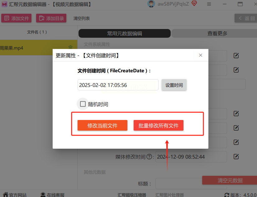 步骤五:根据你的编辑需求,选择相应的操作按钮。如果只需要修改当前选中的视频文件,点击“修改当前文件”;如果需要批量修改所有已导入的视频文件,则点击“修改所有文件”。软件会自动处理所选文件,并在界面底部显示处理进度。
