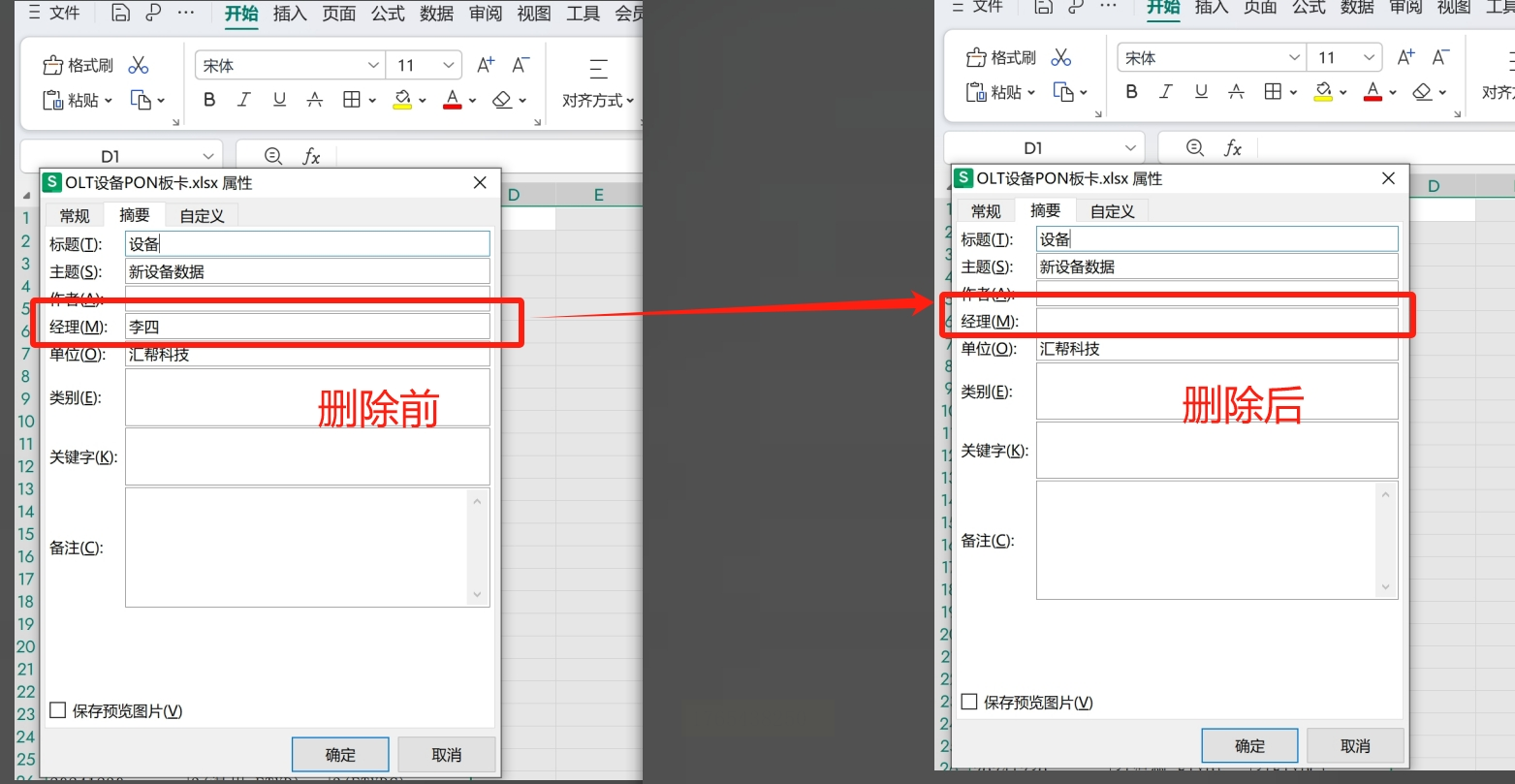 现在保存文件,再次打开时查看属性。需要注意的是,这种方法只能影响新保存的文件,对已有的旧文件需要重新导出。如果是旧文件,可以先另存为新格式(如xlsx),再用上述方法处理。