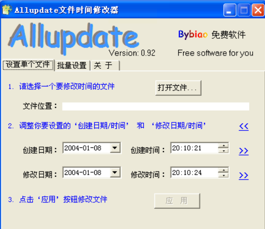 如果你需要对一个文件夹内的大量文件进行系统性的时间调整,比如将所有文件的创建日期统一设置为某个特定日期,Allupdate 的批量处理能力可能会很实用。