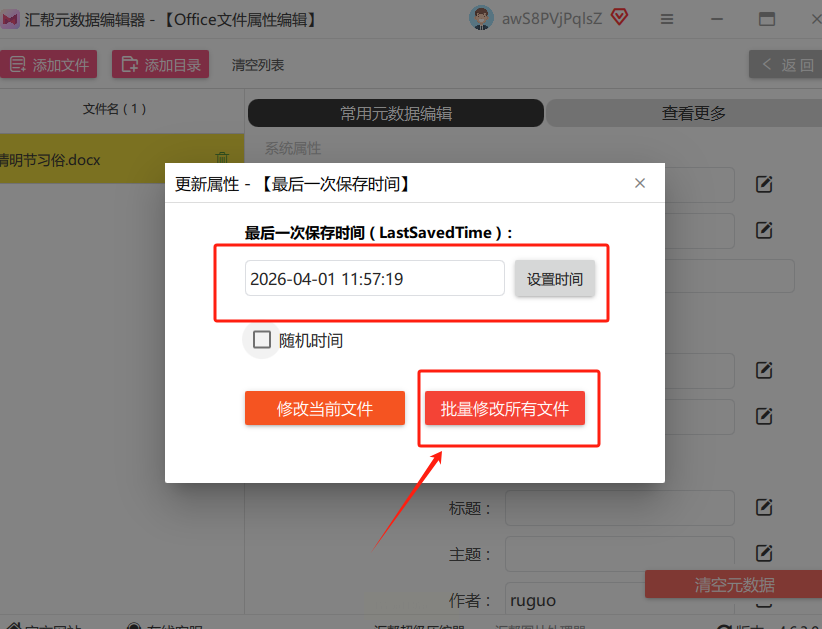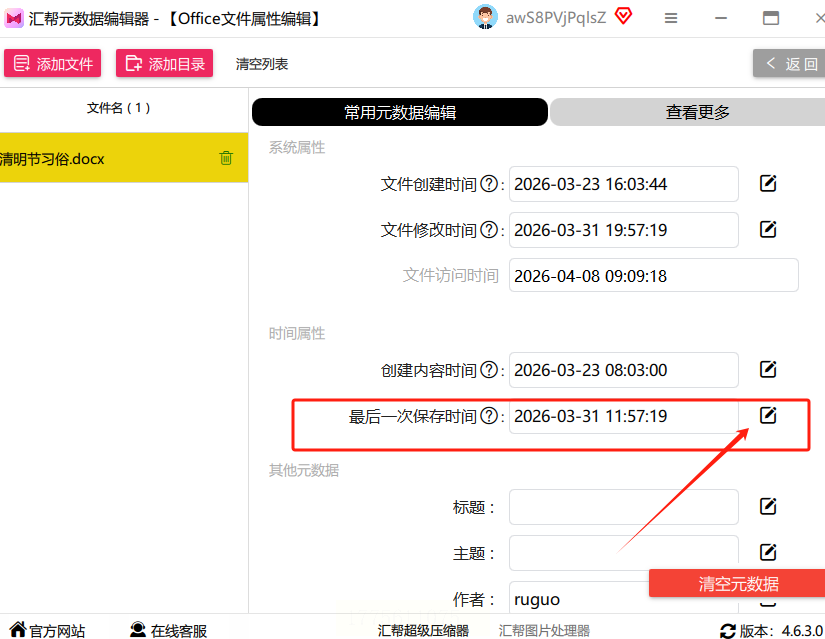 3. 找到时间设置项:添加完文件之后,在软件界面里会显示这些文件的列表。然后你要找到“最后一次保存时间”这个选项,旁边有个小铅笔的图标,点一下就能编辑了。