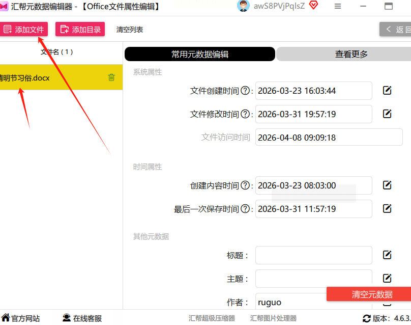 1. 先安装软件:你得先下载这个软件,安装好之后打开。打开之后你会看到它有好多功能,比如改图片的元数据、PDF的元数据,还有Word文档的元数据这些。咱们这次主要是改Word的最后修改时间,所以找到“Office文件属性编辑”这个选项。