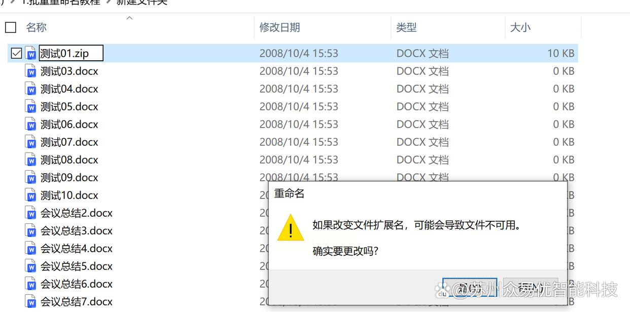 1. 先改文件后缀:找到你要改时间的Word文档,你直接选中它,右键点“重命名”,把后缀改成“zip”。这时候系统会提示你,改后缀可能会导致文件打不开,你点“是”就行。其实这时候它已经变成一个压缩包了,里面的内容没变,只是后缀名改了。