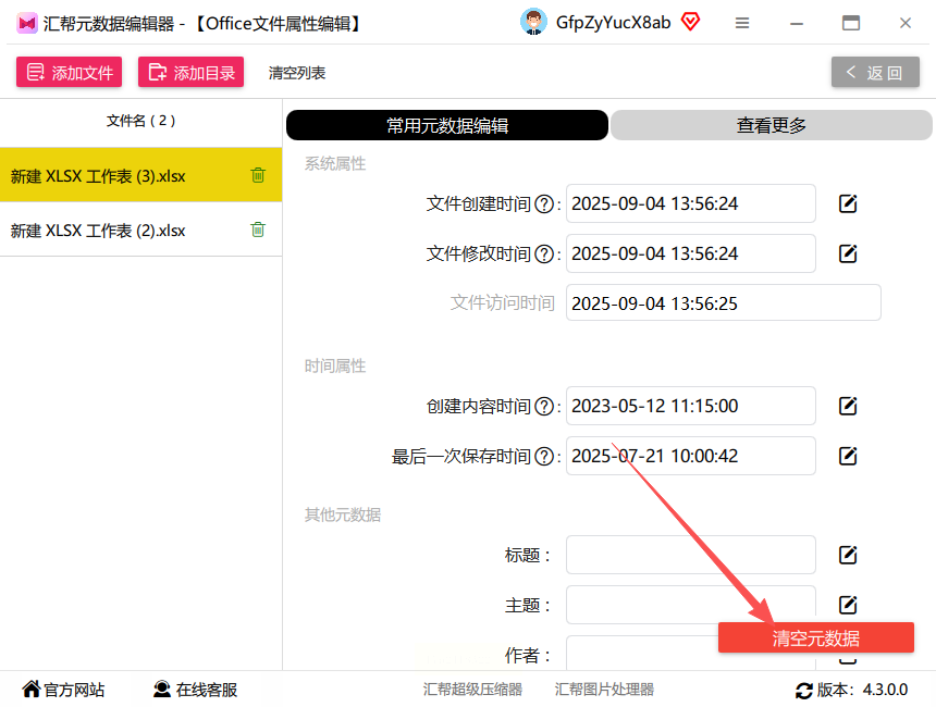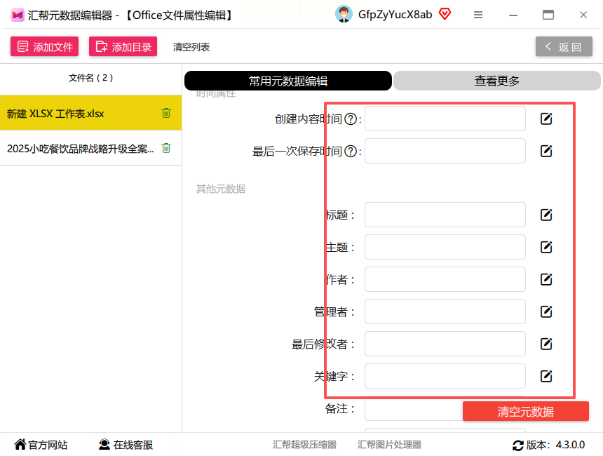 汇帮元数据编辑器是一款专门针对Office文件设计的清理工具,操作简单到新手也能秒上手。具体步骤如下: