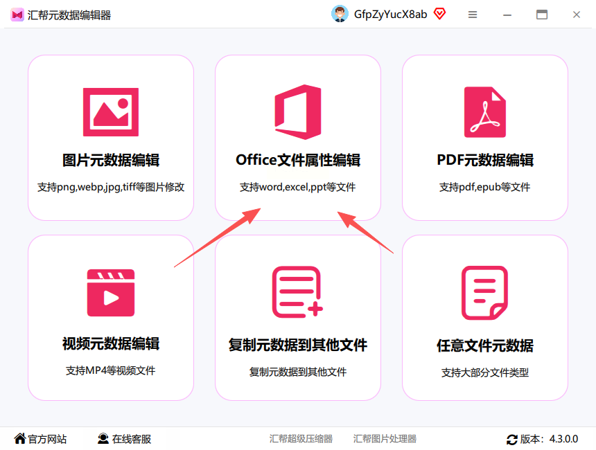步骤一:打开软件后,在主界面找到"Office文件属性编辑"选项,点击进入属性管理模块。这个界面会清晰展示所有可编辑的元数据项,包括但不限于作者信息、创建时间、版本记录等。