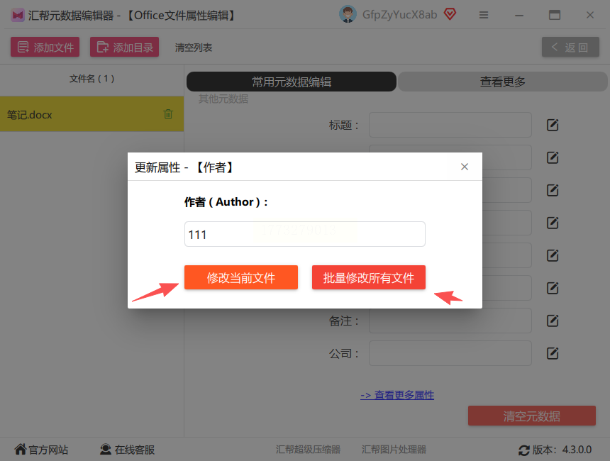 - 多文档批量改:用汇帮元数据编辑器,适合部门统一署名