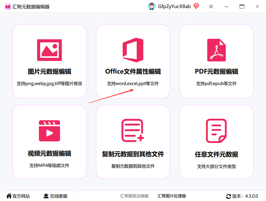 1. 打开软件后,选「office文件属性编辑」模块