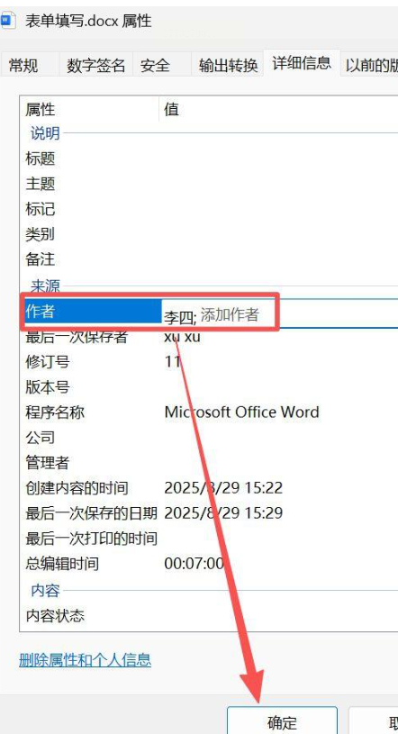 2. 切换到「详细信息」标签页,找到「作者」那一栏