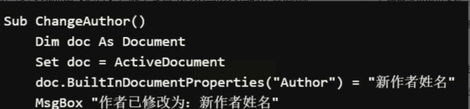 ActiveDocument.BuiltInDocumentProperties("作者").Value = newAuthor