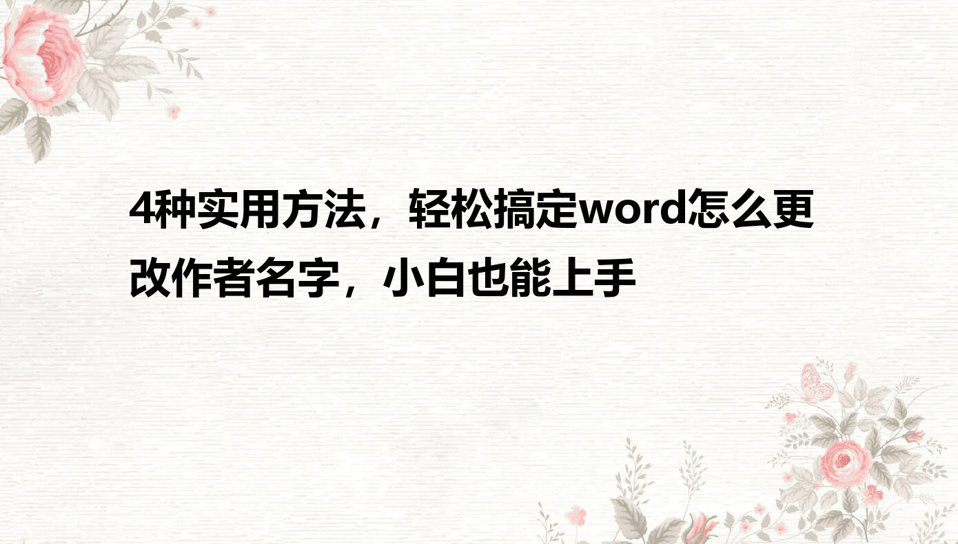 平时用Word写文档,是不是总遇到作者名字不对的情况?比如公司电脑写的文档显示别人名字,或者修改别人的文档需要改成自己署名,归档时要统一作者名称,急得抓耳挠腮。其实word怎么更改作者名字根本不用那么复杂,今天分享4种超实用方法,从单个文档到批量修改,小白也能轻松搞定!