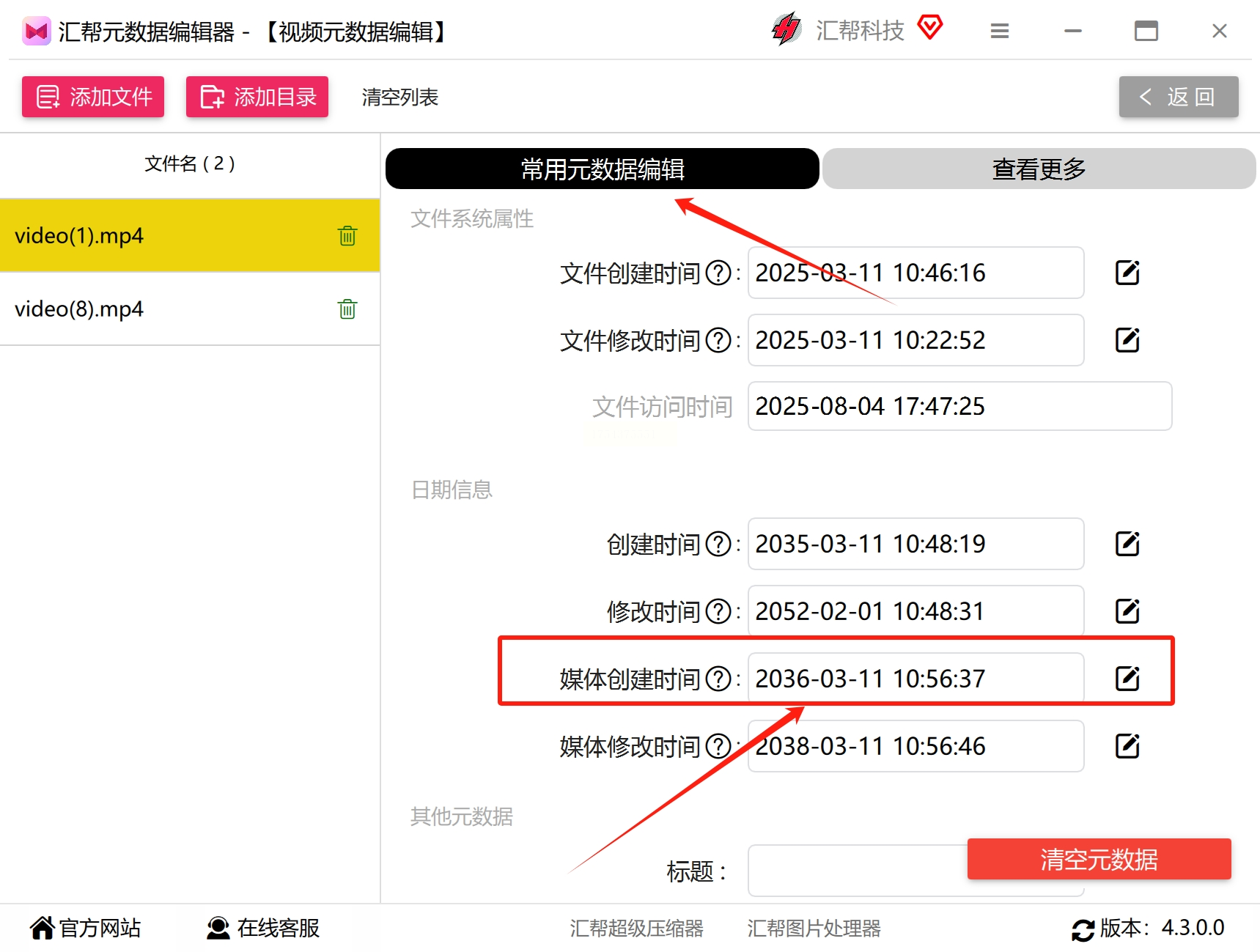 4. 选择“常用元数据编辑”,在下方找到“媒体创建时间”选项,轻轻一点!