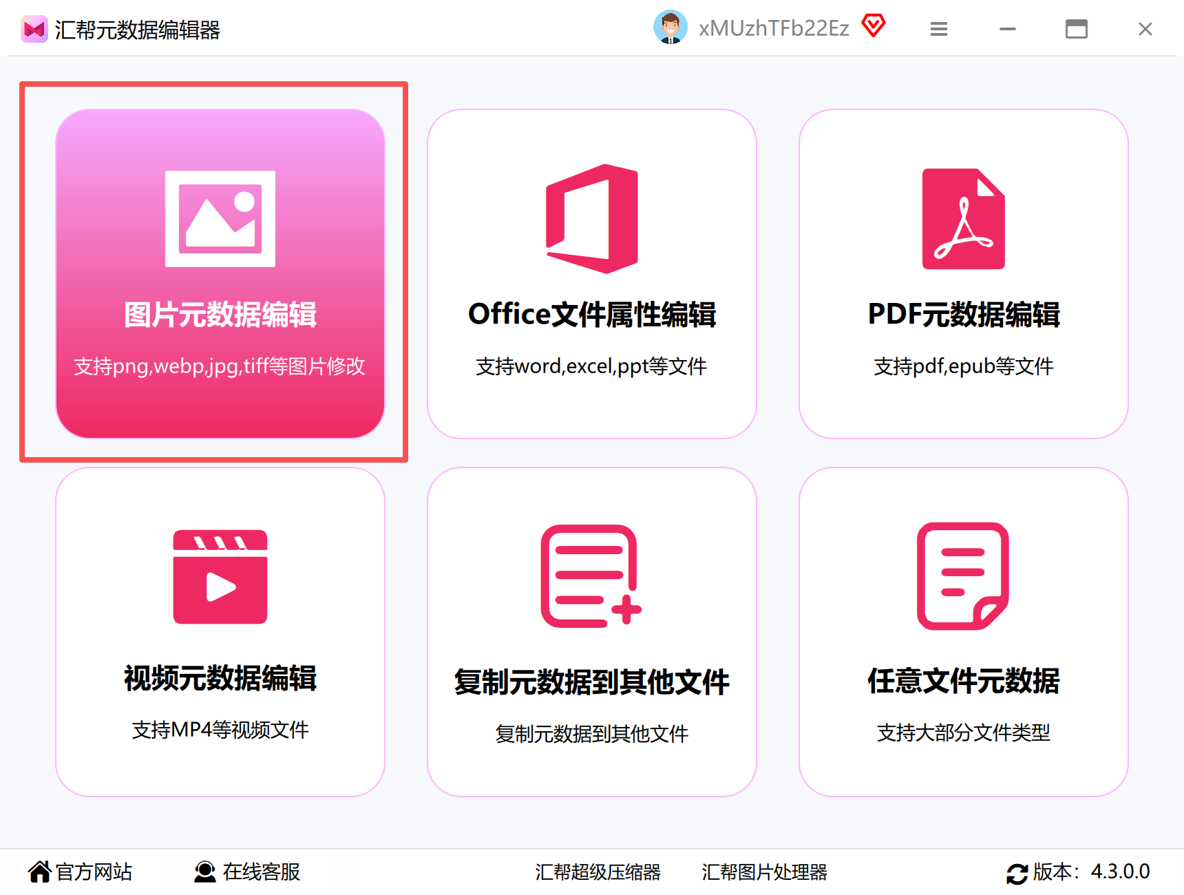 1. 打开软件,选择功能: 打开软件后,界面会很简单,你会看到“图片元数据编辑”这个选项,直接点它(就像点手机APP的按钮一样)。