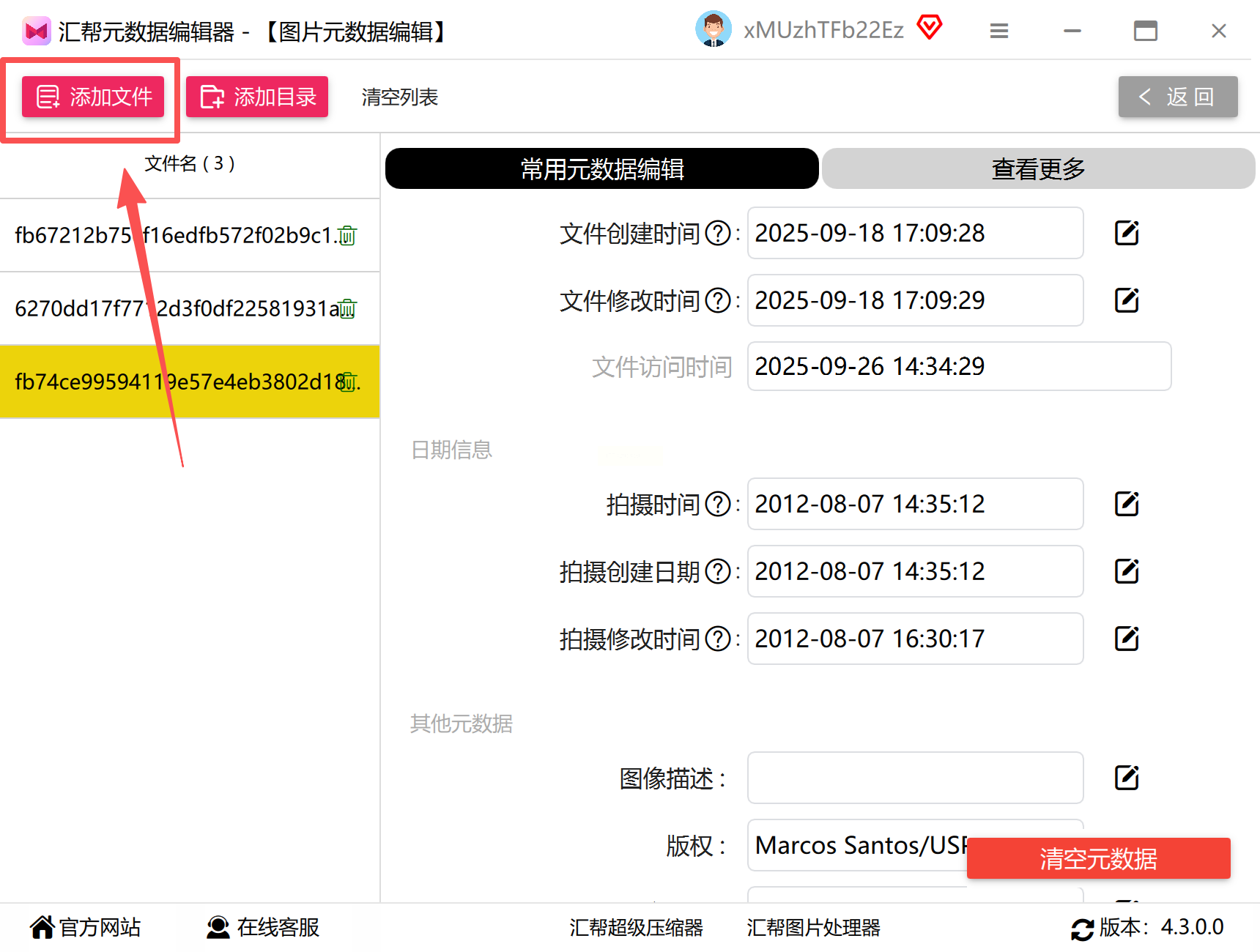 2. 打开软件,导入照片: 安装完成后,双击桌面上的软件图标打开它。在软件里点“添加照片”按钮(或者直接拖照片进去,和刚才一样),选好你要改时间的照片。