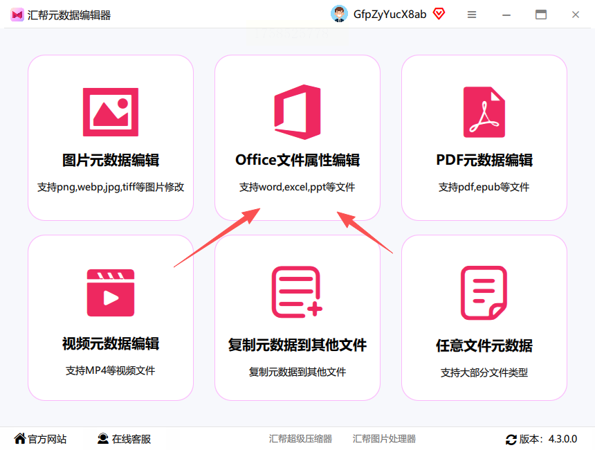 2. 在主界面找到"Office文件属性编辑"选项,点击进入。