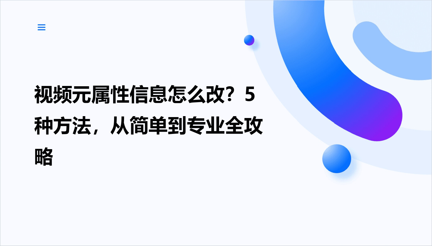 在数字内容管理日益精细化的今天,视频元数据作为视频文件的"隐形身份证",承载着标题、创作者、版权信息等关键内容。当视频在不同设备间传输、存储或分享时,混乱的元数据不仅会影响检索效率,还可能导致作品信息展示错误。无论是个人创作者整理作品库,还是企业团队规范媒体资产,掌握元数据修改技能都能显著提升内容管理效率。本文将从软件工具选择到具体操作流程,全面解析视频元数据修改的实用方法,帮助不同需求的用户找到最适合的解决方案。