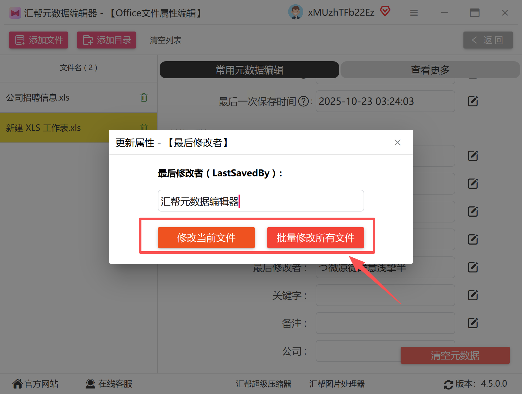 点击界面下方的"修改文件"按钮,软件会立即更新文件元数据。