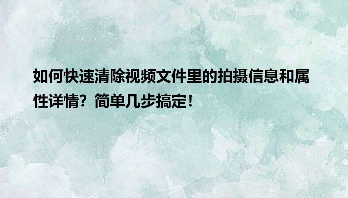 如何快速清除视频文件里的拍摄信息和属性详情?简单几步搞定!