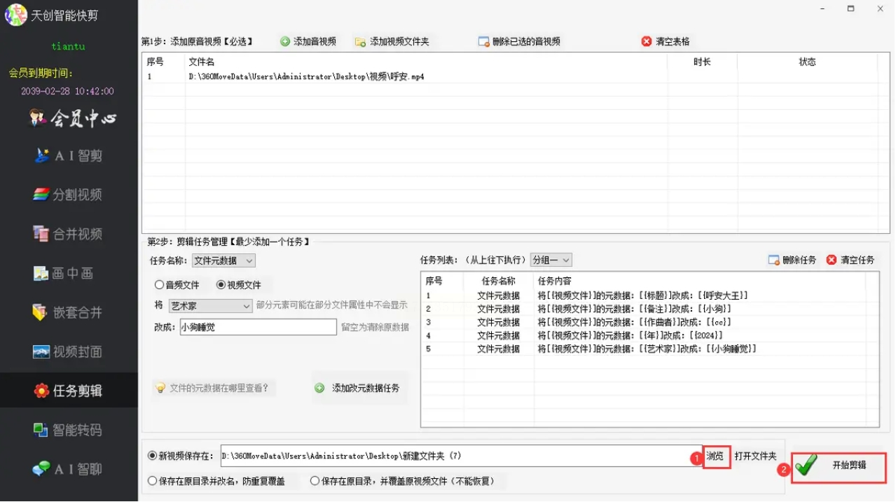 最后点击"开始剪辑",选择保存位置,等进度条走完就大功告成啦!