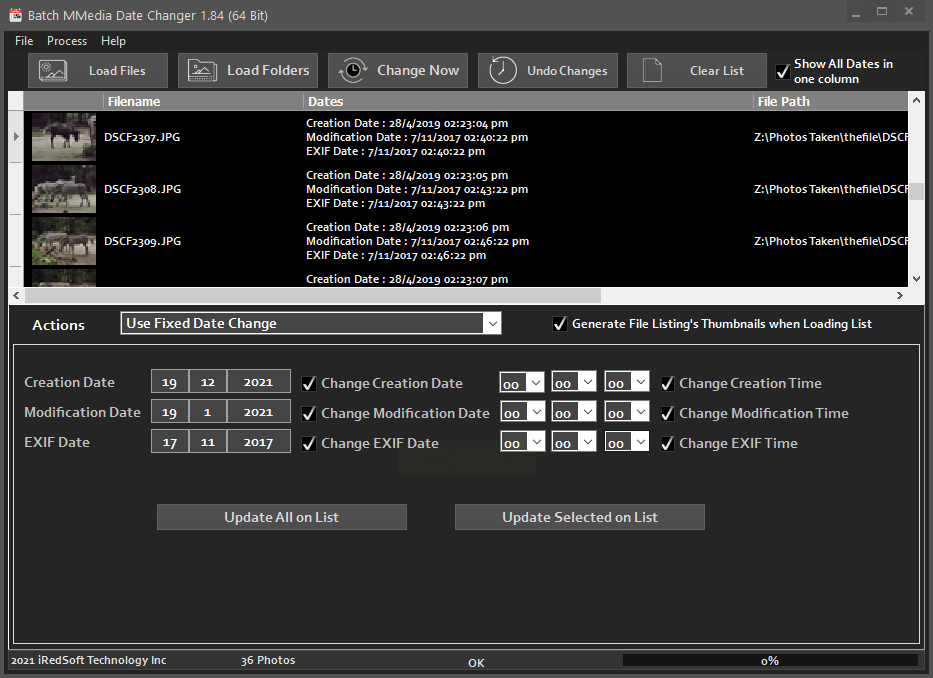 3. 预览与执行:点击“Update All List”查看修改预览,确认无误后点击“Change Dates”完成操作,修改结果自动保存到原文件。