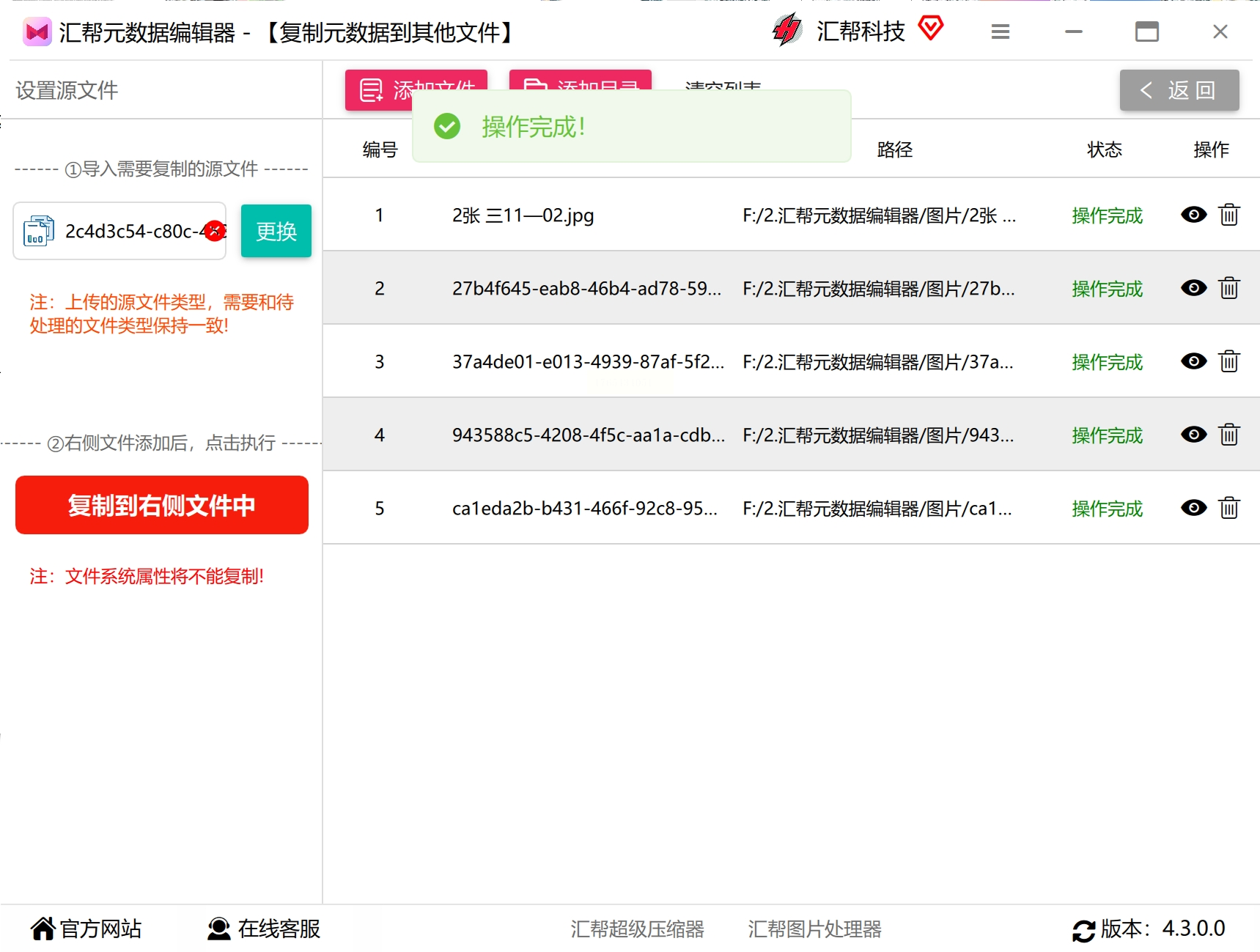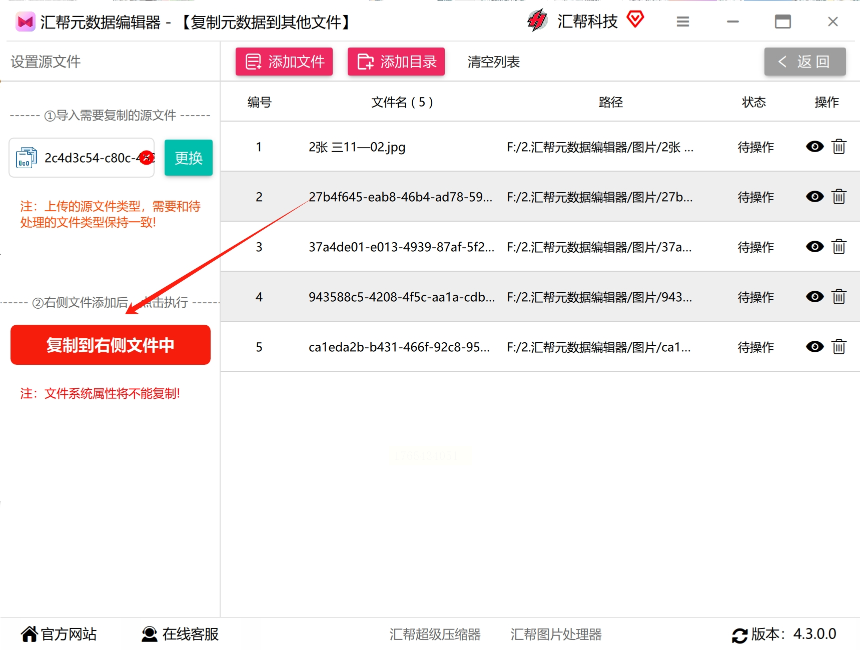 对于不熟悉编程的用户,使用专业软件是复制元数据最直观、高效的方式。这类软件通常提供图形化界面,操作简单,适合处理大批量图片。下面以“汇帮元数据编辑器”为例,详细介绍操作步骤。