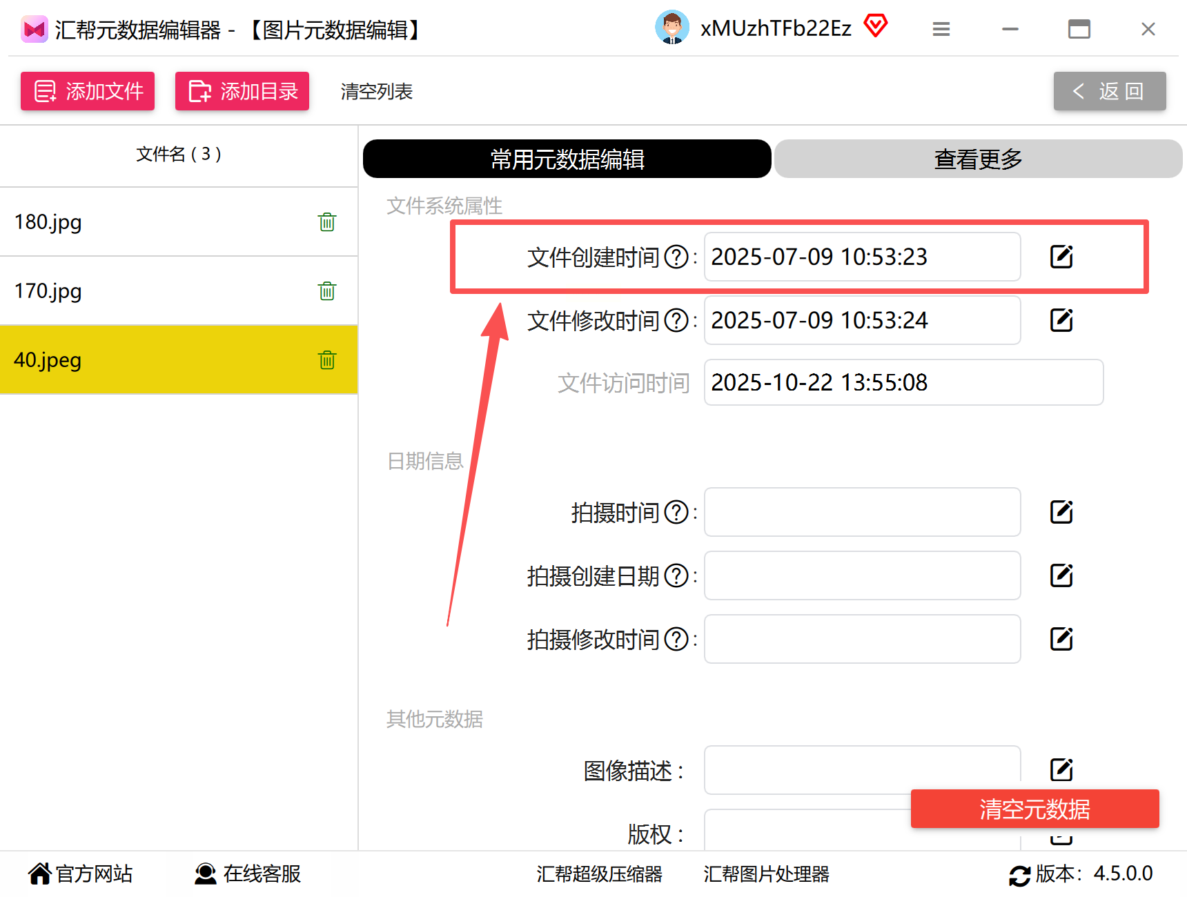 汇帮元数据编辑器作为专注图像元数据修改的工具,以其对常见图片格式(PNG、WebP、JPG等)的全面支持,成为处理单张或批量图片时间修正的理想选择。其操作流程设计贴合普通用户需求,无需复杂参数设置即可完成核心功能。