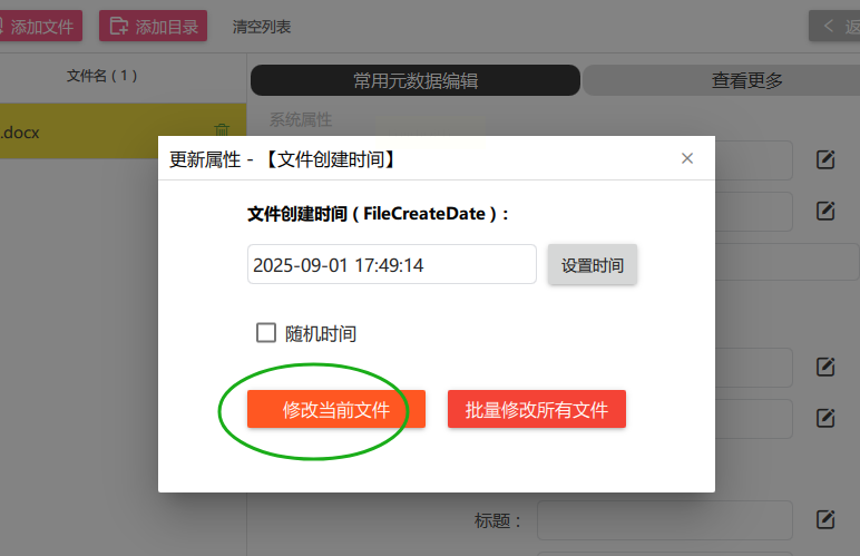 文件导入后,右边预览区会显示所有元数据信息,包括“创建时间”“修改时间”“标题”“作者”等。你可以仔细看看当前的创建时间是多少,确认一下是不是需要修改的那个。比如我有个报告文档,现在创建时间是2023年1月1日,我想改成2023年3月15日,就需要在这里找到这个时间项。