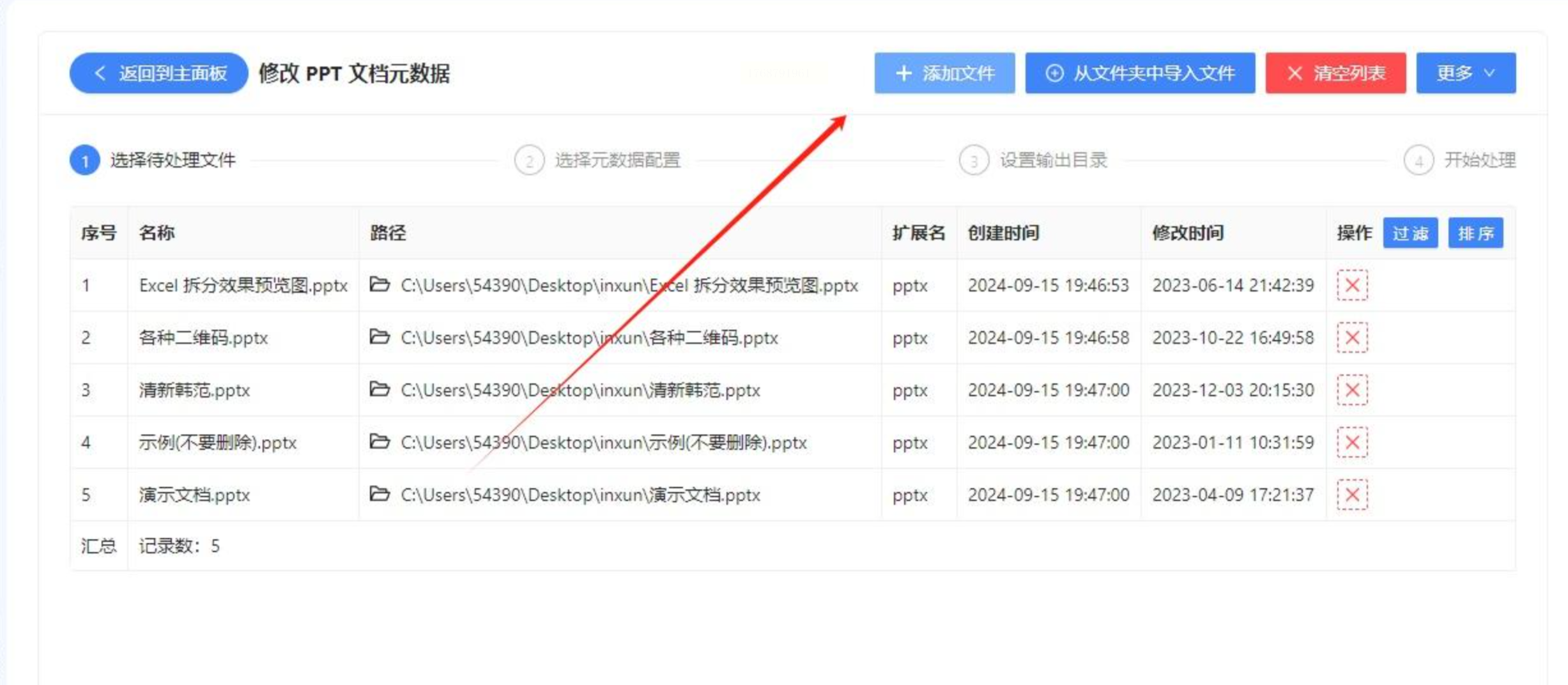 点击“添加文件”或“选择文件夹”按钮,将需要修改创建时间的PPT文件导入软件。批量处理工具通常支持多种选择方式,包括单选、多选、整个文件夹导入等。导入后,文件列表会显示文件名、大小、当前属性等基本信息。