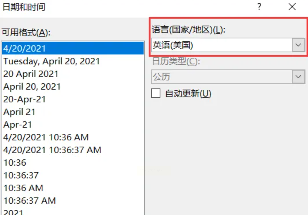对话框中的一个重要选项是“自动更新”。如果勾选此选项,插入的日期时间会随着每次打开文件而更新为当前系统时间;如果不勾选,则保持插入时的固定时间。根据您的需求选择是否启用自动更新。