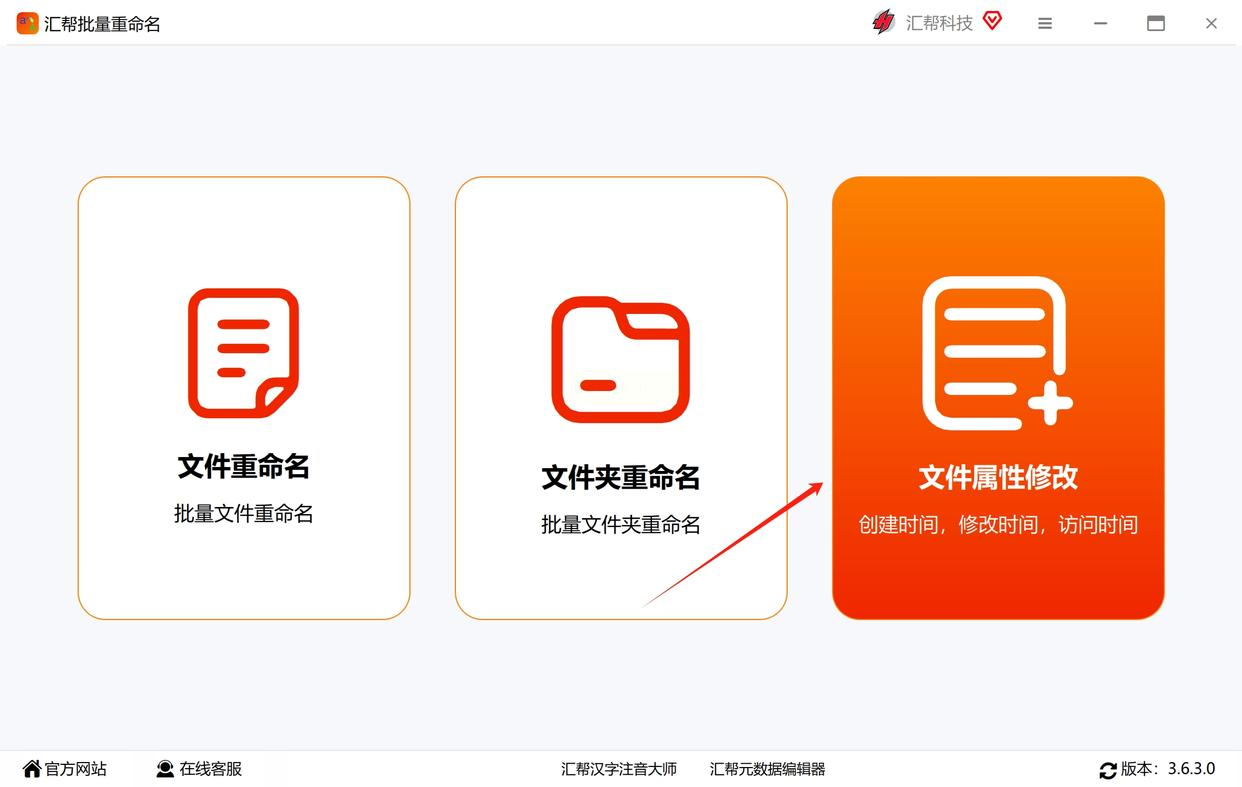 这个方法适合需要处理大量文件的情况。打开批量重命名工具,在主界面找到文件属性修改功能。