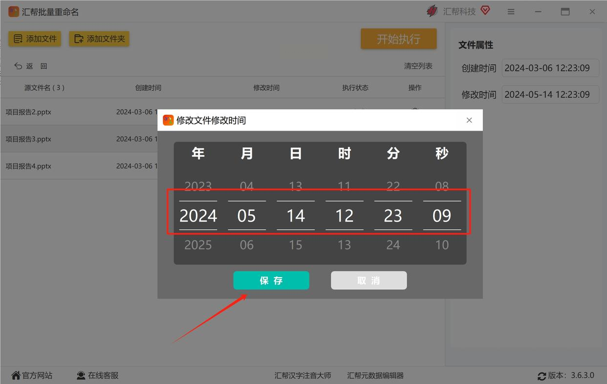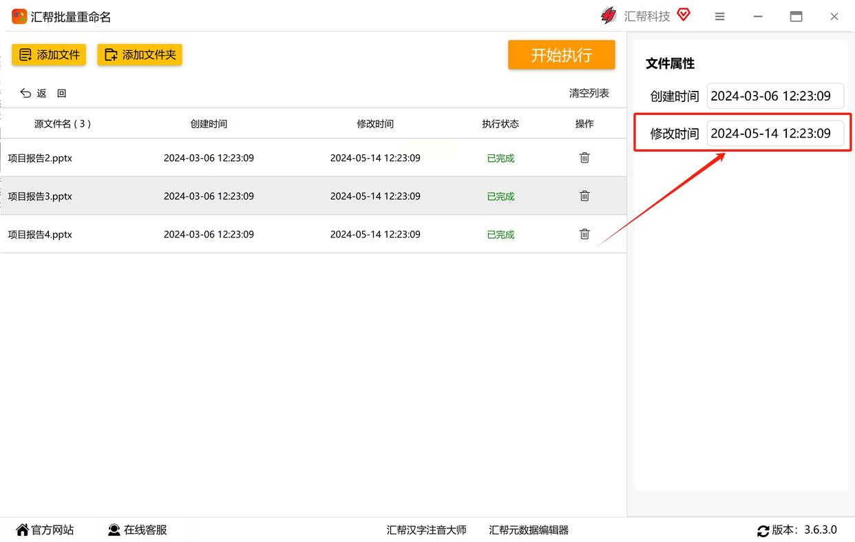 设置完成后,点击开始执行按钮,软件就会自动更新所有文件的时间属性。