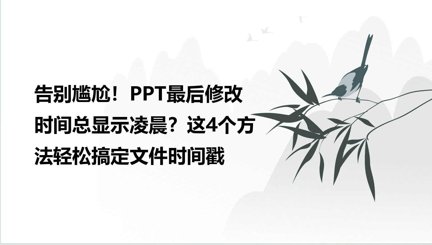 这份教程就是帮你解决这个痛点的。不管你是要调整项目时间线,还是想统一团队文件的修改记录,掌握这些方法后,你就能随心所欲地设置PPT的保存时间。学完这些操作,你不仅能摆脱时间显示的困扰,还能提升文件管理的专业性,再也不用担心因为时间问题引起误解了。下面我就把几种实用的方法整理出来,步骤都很详细,跟着做就行。