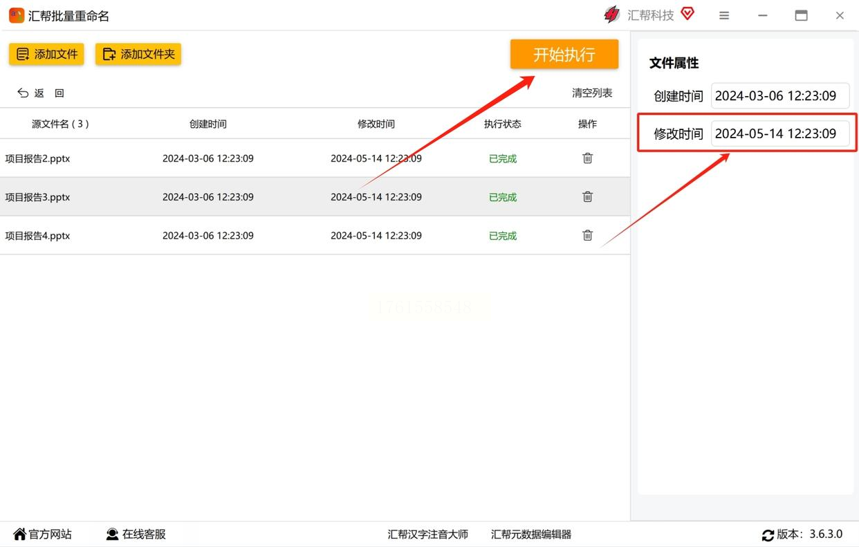 设置完成后,点击开始执行按钮,软件就会自动更新所有文件的时间属性。处理完成后,建议检查一下文件属性,确认修改是否成功。