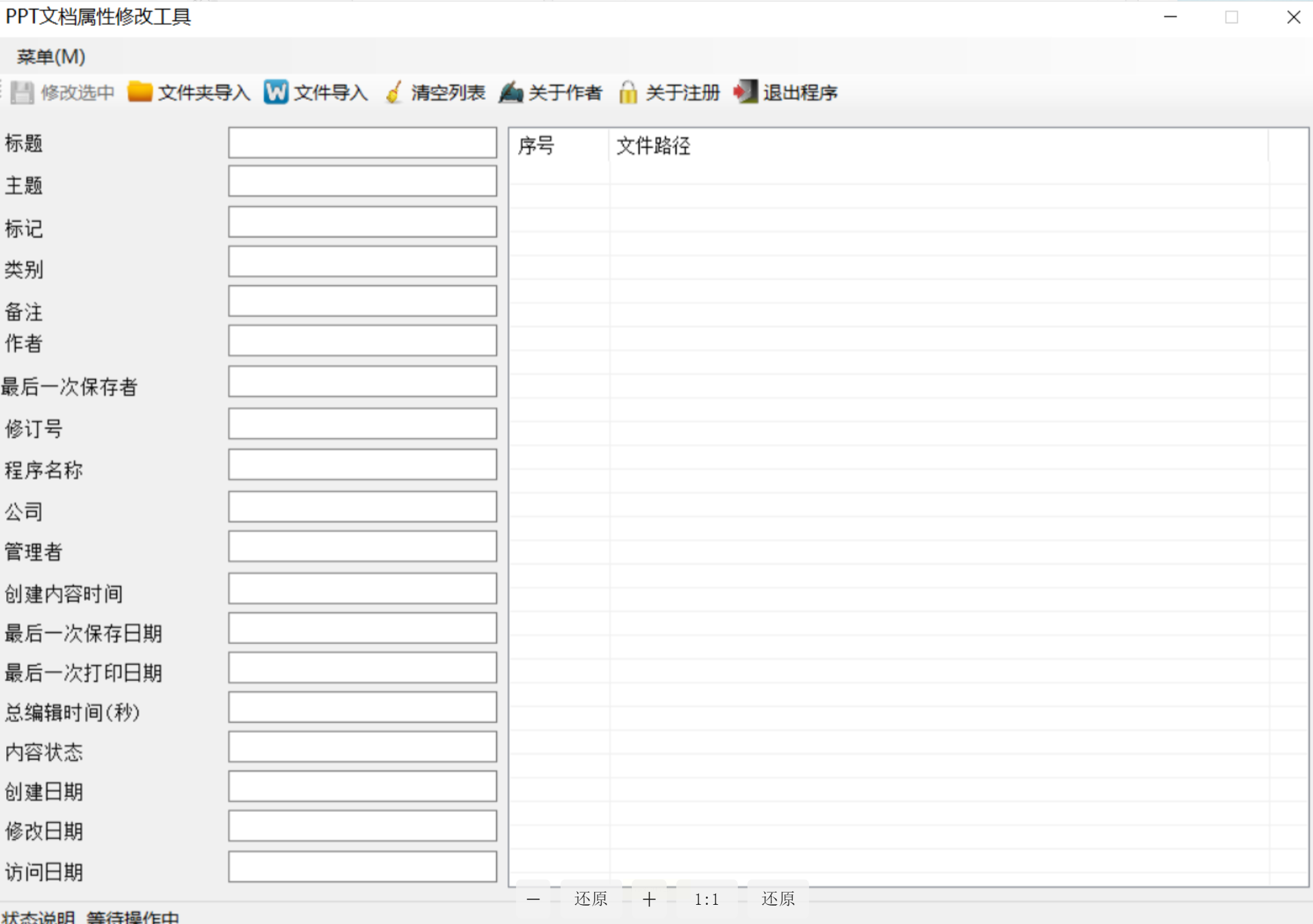 启动软件后,你会看到主界面提供了多种文件类型的元数据编辑选项。点击“Office文件属性编辑”进入PPT文件处理功能。