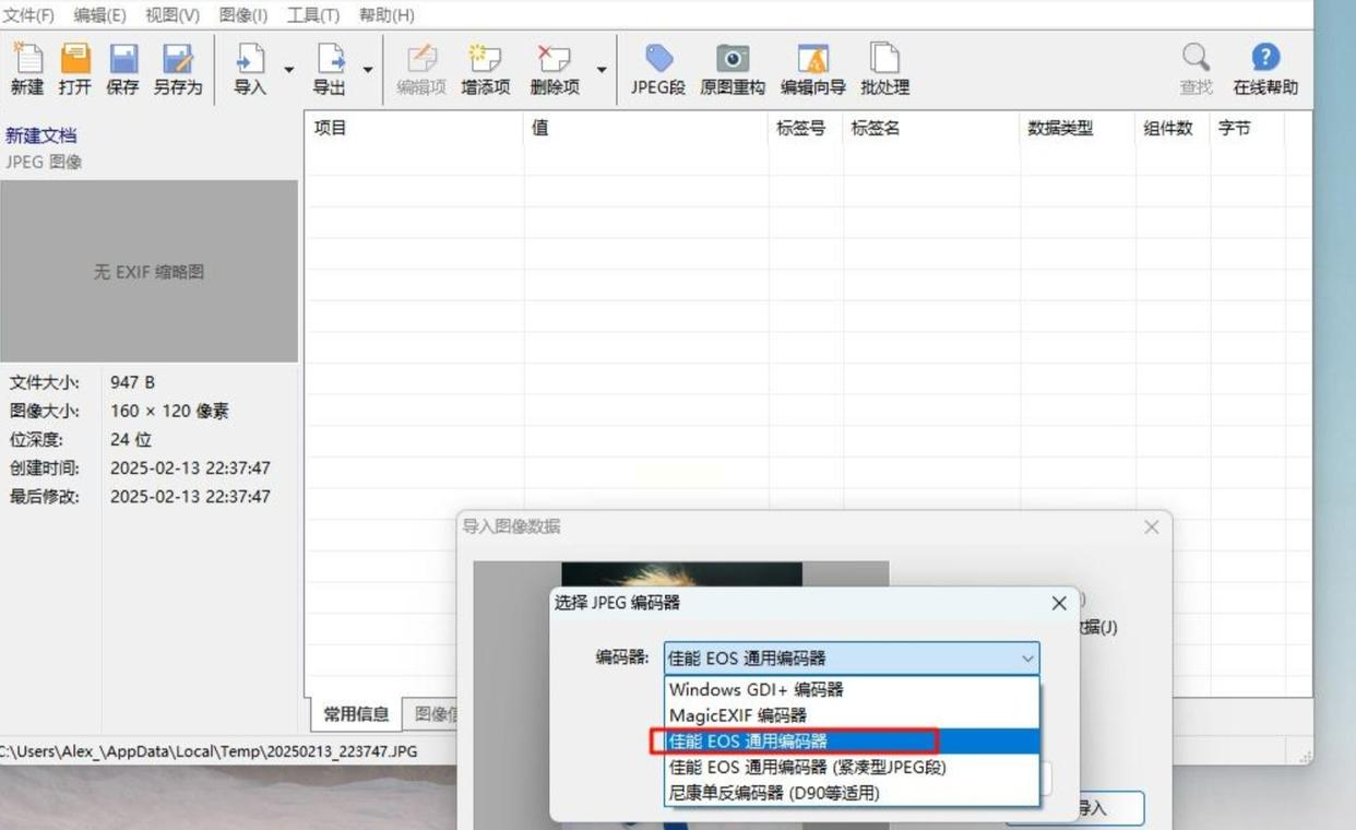 5. 添加EXIF信息: 如果想要增加导入的图像,点击“增添项”,然后添加 EXIF 原始图像参数。
