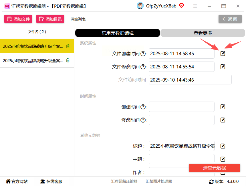 先去汇帮元数据编辑器官网下载软件,安装完成后打开它。找到界面上的“PDF元数据编辑”选项,点击进入编辑界面。