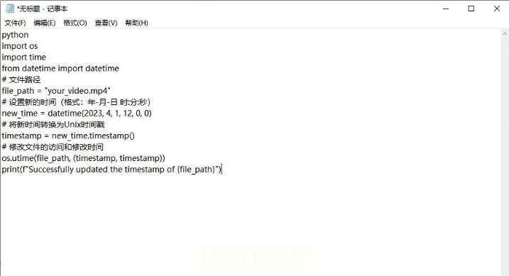 exiftool -alldates="2024:01:01 12:00:00" 你的视频.mp4