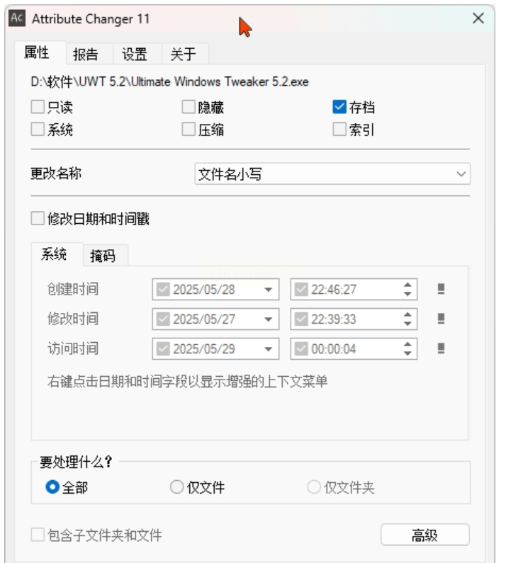 这是一款功能更强的文件属性修改工具。安装后,它会集成到你的鼠标右键菜单里。当你对文件点击右键时,菜单中会出现它的选项,可以直接调用。它的界面允许你预览修改后的效果,然后再确认应用,这有助于避免误操作。如果你需要频繁、批量地修改各种文件(不仅仅是视频)的属性,比如创建日期、修改日期、只读属性等,这款工具会比较高效。