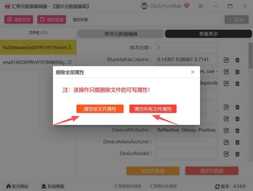5. 在右下角找到"清空元数据"按钮,点击后会弹出操作提示。