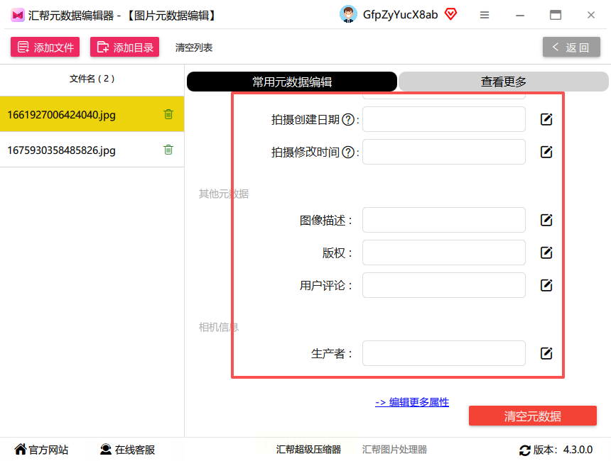 汇帮元数据编辑器是一款专注图片元数据管理的工具,操作直观且支持批量处理,非常适合新手用来清除照片的版权信息。