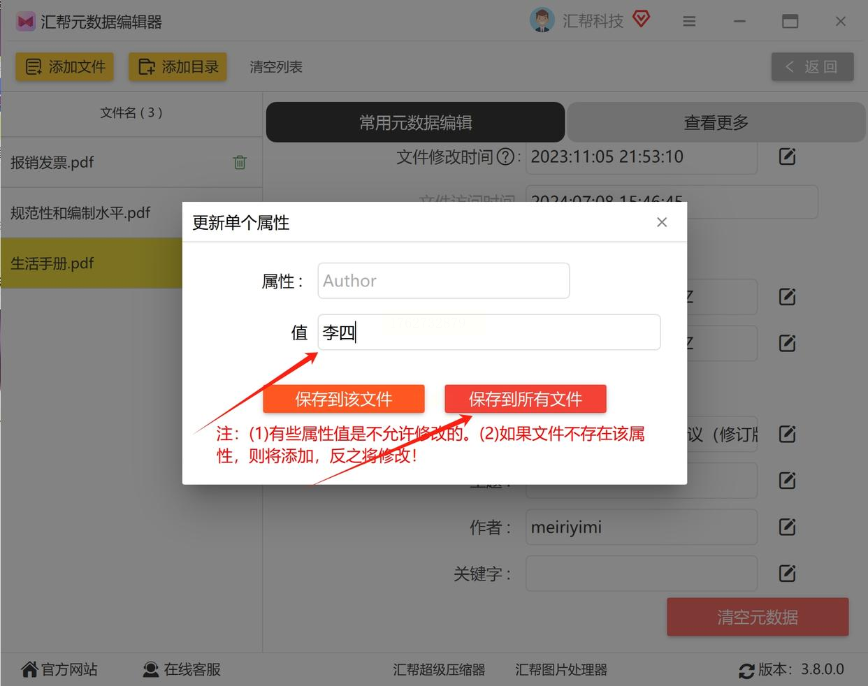 1. 汇帮元数据编辑器(批量改,最全面)