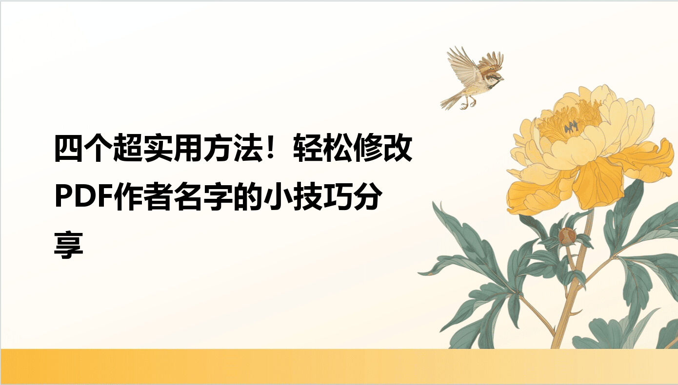 在日常办公中,我们经常会遇到PDF文档需要修改作者信息的情况——比如从"实习生"变成"项目负责人",或者纠正之前的错误署名。但很多人要么找不到修改入口,要么修改后发现只改了部分信息,这篇教程就手把手教你4种方法,让你轻松搞定作者信息更新,以后再也不用为这个问题烦恼啦!