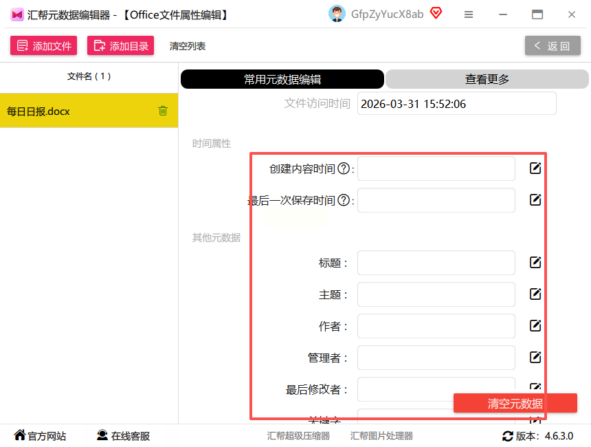 温馨提示:在使用任何工具前,建议备份原文档,避免因操作失误导致数据丢失。汇帮元数据编辑器等本地工具因无需上传云端,更能保障文档内容安全,适合处理敏感信息的场景。